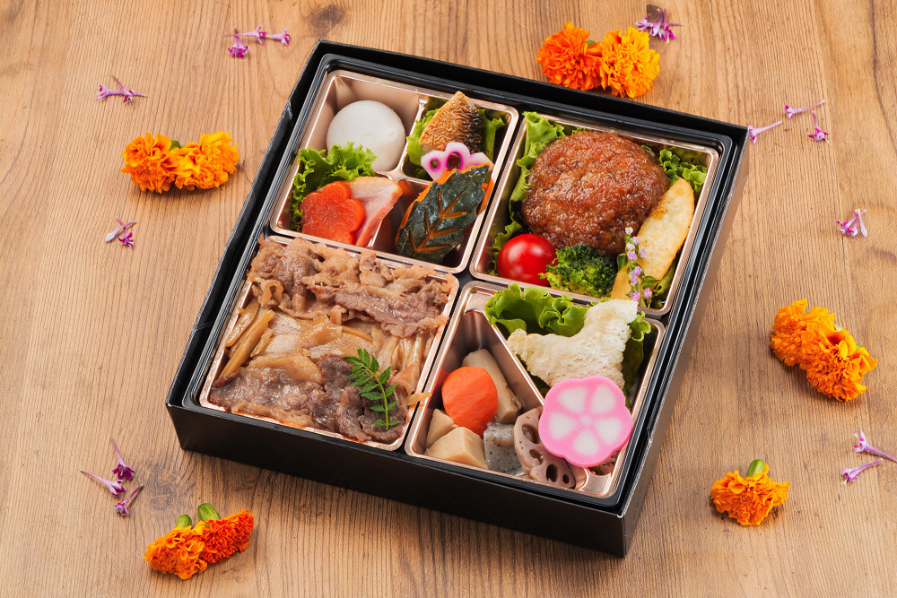 瑠璃(るり)~黒毛和牛のすき焼重と特製和風ソースの黒毛和牛ハンバーグのお弁当~
