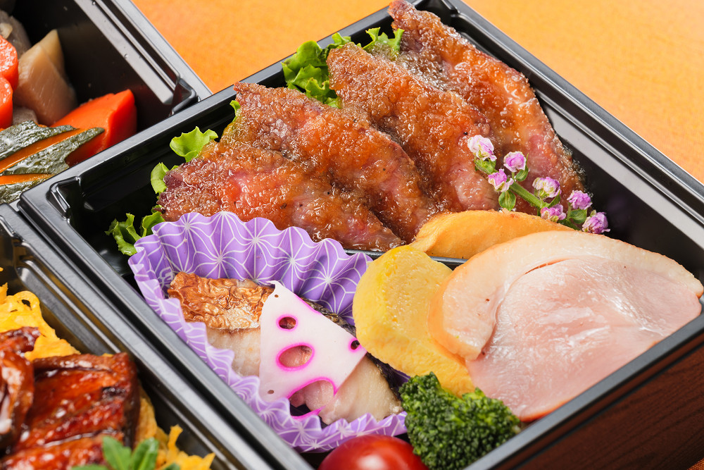 厳選うな重(錦糸卵)/厳選黒毛牛ステーキ/ローストビーフ/煮物合わせ/焼き魚/その他季節の副菜